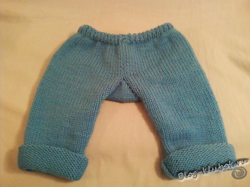 Вяжем 2 половинки снизу вверх. Длина штанишек 40 см.