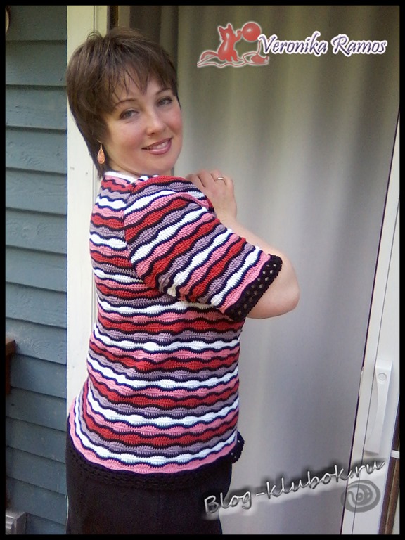 Вязаная кофточка на лето в полосочку — новая креативная модель от Вероники Рамос.